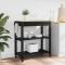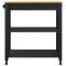 Chariot de cuisine MONZA Noir 84 x 40 x 88,5 cmCe chariot de cuisine moderne, fait en bois de pin massif, combine simplicité et praticité grâce à son look épuré. Parfait pour les cuisines familiales ou les petits espaces, il offre un super équilibre entre style et fonctionnalité. Avec sa grande surface rectangulaire, il permet de gérer plein de tâches culinaires ou de servir pendant des dîners entre amis. La chaleur du bois se marie bien avec tous les styles de cuisines, qu'elles soient modernes ou plus classiques. Construction en bois de pin massif : Le chariot est en pin massif, connu pour sa durabilité et son look esthétique. Il reste solide même sous un poids lourd et résiste à l'usure avec le temps, tout en offrant un joli motif de grain. La chaleur du pin ajoute une belle touche qui complète votre cuisine moderne, en faisant un élément central incontournable. Options de rangement variées : Avec une étagère pratique et un tiroir, ce chariot répond à divers besoins de rangement, que ce soit pour les ustensiles ou des boissons. Le tiroir permet de cacher les trucs, et les étagères ouvertes sont idéales pour exposer de jolis objets ou garder toujours à portée de main les ustensiles les plus utilisés. Combiné, ça facilite l'organisation de votre cuisine. Confort moderne : Avec ses quatre roulettes pivotantes, ce chariot se déplace facilement, ajoutant ainsi un espace de travail ou de service là où vous en avez besoin. Deux roulettes ont un verrou, donc il reste stable quand vous cuisinez. Cette fonctionnalité permet de jongler entre mobilité et stabilité quand c'est nécessaire. Design simple : Sa forme rectangulaire permet à ce chariot de trouver sa place dans tous types de cuisines, gardant l'harmonie même dans les petits espaces. Son style moderne s'adapte à plusieurs décors, faisant de lui un meuble à la fois pratique et élégant. Instructions d'entretien : Pour garder ce chariot au top, il suffit de l'essuyer avec un chiffon sec et d'éviter les nettoyants agressifs. Ce nettoyage simple prolonge sa beauté naturelle, le rendant parfait dans n'importe quelle cuisine pendant des années sans trop de tracas.