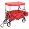 Chariot à main pliable avec toit Acier RougeCe chariot à main pliable a une utilisation polyvalente, notamment à la maison, dans le jardin, pour les voyages et bien plus encore. Le cadre en acier et le tissu Oxford 600D garantissent que le chariot à main est solide, durable et facile à nettoyer. Avec une capacité de chargement de 75 kg, le wagon peut facilement transporter vos effets personnels, cargaisons, plantes, engrais, outils et autres articles. De plus, les roues avant rotatives à 360 ° permettent au chariot de se déplacer en douceur sur les routes inégales et rugueuses. La poignée rembourrée assure également une prise ferme. Grâce à sa conception pliable, le chariot à main est facile à stocker et à transporter. Le chariot a un toit qui peut protéger vos outils ou d'autres biens de la pluie et du soleil. Veuillez noter qu'il n'est pas adapté au transport d'enfants. Le chariot à main est facile à assembler. Conservez ce manuel d'instructions pour référence ultérieure. Le poids maximal admissible est de 75 kg. Ne dépassez pas les limites de poids de cet article. Serrez fermement tous les boulons, vis et boutons avant utilisation. Lors du montage initial, ne serrez pas les pièces métalliques pendant que vous fixez les vis. Une fois le montage terminé, vous pouvez serrer fermement les pièces métalliques et vous assurer qu'elles ne bougent pas. Sachez que certaines pièces sont lourdes et présentent des bords tranchants. Si des pièces sont manquantes, cassées, endommagées ou usées, cessez d'utiliser ce produit jusqu'à ce qu'il soit réparé ou que des pièces de rechange soient installées. N'utilisez pas cet article à des fins autres que celles prévues, car cela pourrait annuler la garantie du produit. Suivez toujours les instructions fournies par le fabricant dans le manuel pour une utilisation correcte. Ce produit n'est pas adapté au transport d'enfants ou d'animaux. ,