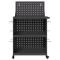 Chariot à outils Noir 65 x 35 x 111 cm Acier laminé à froidCe chariot à outils est une solution cool pour organiser tes outils dans l'atelier ou tout autre espace de travail, parfait à la fois pour les milieux industriels et domestiques. Conçu pour être flexible, il a une structure rectangulaire, élégante et fonctionnelle, pour une utilisation et un déplacement simplifiés. Avec ses lignes nettes et son style minimaliste, il booste à la fois l'apparence et la pratique, en devenant un indispensable pour les pros comme pour les amateurs. Construction en Acier Fait en acier laminé à froid, ce chariot est super solide tout en gardant un look élégant. Il résiste bien à l'usure, parfait pour un usage intensif tout en restant joli et utile. Ses performances robustes s'adaptent aux besoins de tout atelier. Mobilité Totale Avec ses roues verrouillables, ce chariot se déplace facilement sur différentes surfaces, te donnant la liberté de le placer où tu veux tout en restant stable. C'est idéal pour déplacer des outils sans souci. Rangement Fonctionnel Avec plein d'étagères et 12 crochets, t'as un rangement organisé pour tes outils, te permettant de les attraper facilement. Son design aide à réduire le temps passé à chercher et à rendre le travail plus efficace, idéal pour les espaces chargés. Utilisations Multiples Ce chariot est fait pour être utilisé aussi bien à l'intérieur qu'à l'extérieur, idéal pour des tâches variées que ce soit dans des garages, des ateliers, des jardins ou sur des terrasses. Sa polyvalence s'adapte à ce que tu veux faire, c'est un choix pratique pour tous tes projets. Entretien Facile S'occuper de ce chariot est simple : évite les produits chimiques durs et les abrasifs. Un nettoyage rapide suffit pour qu'il reste fonctionnel et beau, parfait pour un usage à long terme tout en gardant son look moderne.