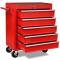 Chariot à outils d'atelier avec 5 tiroirs RougeUtilisez ce chariot à outils pratique avec 5 tiroirs coulissants pour ranger et organiser vos outils. Chaque tiroir est doté d'une doublure antidérapante pour garder vos outils en place. Grâce au verrou intégré, tous les tiroirs peuvent être verrouillés en même temps, ce qui les empêche de s'ouvrir accidentellement lors du déplacement du chariot. Deux des roulettes pivotantes ont des freins. Le comptoir robuste sur le chariot à outils sera un excellent endroit pour garder à portée de main les outils fréquemment utilisés. Il existe également une poignée latérale pratique pour pousser le chariot.