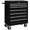Chariot à outils d'atelier avec 7 tiroirs Noir Utilisez ce chariot à outils pratique avec 7 tiroirs coulissants pour ranger et organiser vos outils. Chaque tiroir est doté d'une doublure antidérapante pour garder vos outils en place. Grâce au verrou intégré, tous les tiroirs peuvent être verrouillés en même temps, ce qui les empêche de s'ouvrir accidentellement lors du déplacement du chariot. Deux des roulettes pivotantes ont des freins. Le comptoir robuste sur le chariot à outils sera un excellent endroit pour garder à portée de main les outils fréquemment utilisés. Il existe également une poignée latérale pratique pour pousser le chariot.