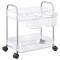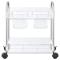 Chariot de rangement à 2 niveaux transparent acryliqueCe chariot de rangement offre une solution idéale pour organiser différents espaces, notamment la cuisine, le salon, la salle de bains, la buanderie et le bureau.Léger et durable : fabriqué à partir de paniers en acrylique robustes et d'un cadre en acier inoxydable, ce chariot de rangement est léger, stable et durable.Utilisation polyvalente : ce chariot de rangement est polyvalent et peut être utilisé dans différents environnements, tels que la cuisine, le salon, la salle de bains et le bureau. Il permet de ranger les aliments, les livres, les articles de toilette et les fournitures de bureau et de les rendre facilement accessibles.Rangement supplémentaire : ce chariot utilitaire dispose de deux coupelles suspendues supplémentaires pour ranger les petits objets tels que les couteaux, les fourchettes, les chewing-gums, les clés et autres, optimisant ainsi l'utilisation de l'espace.Déplacement facile et stationnement sûr : ce chariot de rangement est équipé de quatre roulettes, dont deux avec frein, ce qui vous permet de le déplacer sans effort à l'endroit de votre choix et de le verrouiller en toute sécurité pour un contrôle et une sécurité accrus.Poignées pratiques : ce chariot de rangement est doté de deux poignées sur le dessus, ce qui vous permet de le pousser et de le tirer facilement pour le déplacer.