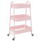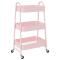 Chariot de rangement à 3 niveaux Rose 42 x 41,5 x 77 cm AcierCe chariot de rangement offre une solution idéale pour organiser divers espaces, notamment votre cuisine, votre salon, votre salle de bain, votre buanderie et votre bureau. Matériau robuste : l'acier peint offre une résistance, une durabilité et une résistance à la rouille et aux rayures exceptionnelles, garantissant des performances et une fiabilité durables. Utilisation polyvalente : ce chariot de rangement est polyvalent et peut être utilisé dans divers environnements, tels que la cuisine, le salon, la salle de bain et le bureau. Il peut aider à garder des choses comme la nourriture, les livres, les articles de toilette et les fournitures de bureau soigneusement rangés et facilement accessibles. Déplacement facile et stationnement sûr : ce chariot de rangement est équipé de quatre roulettes, dont deux avec freins, vous permettant de le déplacer sans effort à n'importe quel endroit souhaité et de le verrouiller en place pour plus de contrôle et de sécurité. Poignées pratiques : ce chariot de rangement est conçu avec deux poignées sur le dessus, ce qui vous permet de pousser et de tirer facilement pour une mobilité pratique. Motifs creux : le panier présente des motifs creux dans le fond, favorisant la circulation de l'air et empêchant l'accumulation de poussière.
