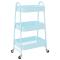 Chariot de rangement à 3 niveaux bleu 42x41,5x77 cm acierCe chariot de rangement offre une solution idéale pour organiser différents espaces, notamment la cuisine, le salon, la salle de bains, la buanderie et le bureau.Matériau robuste : l'acier peint offre une exceptionnelle solidité, durabilité et résistance à la rouille et aux rayures, assurant une performance et une fiabilité à long terme.Utilisation polyvalente : ce chariot de rangement est polyvalent et peut être utilisé dans différents environnements, tels que la cuisine, le salon, la salle de bains et le bureau. Il permet de ranger les aliments, les livres, les articles de toilette et les fournitures de bureau et de les rendre facilement accessibles.Déplacement facile et stationnement sûr : ce chariot de rangement est équipé de quatre roulettes, dont deux avec frein, ce qui vous permet de le déplacer sans effort à l'endroit de votre choix et de le verrouiller en toute sécurité pour un contrôle et une sécurité accrus.Poignées pratiques : ce chariot de rangement est doté de deux poignées sur le dessus, ce qui vous permet de le pousser et de le tirer facilement pour le déplacer.Motifs creux : le panier présente des motifs creux au fond, ce qui favorise la circulation de l'air et empêche l'accumulation de poussière.