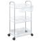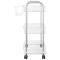 Chariot de rangement à 3 niveaux transparent acryliqueCe chariot de rangement offre une solution idéale pour organiser différents espaces, notamment la cuisine, le salon, la salle de bains, la buanderie et le bureau.Léger et durable : fabriqué à partir de paniers en acrylique robustes et d'un cadre en acier inoxydable, ce chariot de rangement est léger, stable et durable.Utilisation polyvalente : ce chariot de rangement est polyvalent et peut être utilisé dans différents environnements, tels que la cuisine, le salon, la salle de bains et le bureau. Il permet de ranger les aliments, les livres, les articles de toilette et les fournitures de bureau et de les rendre facilement accessibles.Rangement supplémentaire : ce chariot utilitaire dispose de deux coupelles suspendues supplémentaires pour ranger les petits objets tels que les couteaux, les fourchettes, les chewing-gums, les clés et autres, optimisant ainsi l'utilisation de l'espace.Déplacement facile et stationnement sûr : ce chariot de rangement est équipé de quatre roulettes, dont deux avec frein, ce qui vous permet de le déplacer sans effort à l'endroit de votre choix et de le verrouiller en toute sécurité pour un contrôle et une sécurité accrus.Poignées pratiques : ce chariot de rangement est doté de deux poignées sur le dessus, ce qui vous permet de le pousser et de le tirer facilement pour le déplacer.