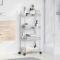 Chariot de rangement à 4 niveaux transparent acryliqueCe chariot de rangement offre une solution idéale pour organiser différents espaces, notamment la cuisine, le salon, la salle de bains, la buanderie et le bureau. Léger et durable : fabriqué à partir de paniers en acrylique robustes et d'un cadre en acier inoxydable, ce chariot de rangement est léger, stable et durable. Utilisation polyvalente : ce chariot de rangement est polyvalent et peut être utilisé dans différents environnements, tels que la cuisine, le salon, la salle de bains et le bureau. Il permet de ranger les aliments, les livres, les articles de toilette et les fournitures de bureau et de les rendre facilement accessibles. Rangement supplémentaire : ce chariot utilitaire dispose de deux coupelles suspendues supplémentaires pour ranger les petits objets tels que les couteaux, les fourchettes, les chewing-gums, les clés et autres, optimisant ainsi l'utilisation de l'espace. Déplacement facile et stationnement sûr : ce chariot de rangement est équipé de quatre roulettes, dont deux avec frein, ce qui vous permet de le déplacer sans effort à l'endroit de votre choix et de le verrouiller en toute sécurité pour un contrôle et une sécurité accrus. Poignées pratiques : ce chariot de rangement est doté de deux poignées sur le dessus, ce qui vous permet de le pousser et de le tirer facilement pour le déplacer. ,