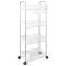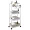 Chariot de rangement à 4 niveaux transparent acryliqueCe chariot de rangement offre une solution idéale pour organiser différents espaces, notamment la cuisine, le salon, la salle de bains, la buanderie et le bureau.Léger et durable : fabriqué à partir de paniers en acrylique robustes et d'un cadre en acier inoxydable, ce chariot de rangement est léger, stable et durable.Utilisation polyvalente : ce chariot de rangement est polyvalent et peut être utilisé dans différents environnements, tels que la cuisine, le salon, la salle de bains et le bureau. Il permet de ranger les aliments, les livres, les articles de toilette et les fournitures de bureau et de les rendre facilement accessibles.Rangement supplémentaire : ce chariot utilitaire dispose de deux coupelles suspendues supplémentaires pour ranger les petits objets tels que les couteaux, les fourchettes, les chewing-gums, les clés et autres, optimisant ainsi l'utilisation de l'espace.Déplacement facile et stationnement sûr : ce chariot de rangement est équipé de quatre roulettes, dont deux avec frein, ce qui vous permet de le déplacer sans effort à l'endroit de votre choix et de le verrouiller en toute sécurité pour un contrôle et une sécurité accrus.Poignées pratiques : ce chariot de rangement est doté de deux poignées sur le dessus, ce qui vous permet de le pousser et de le tirer facilement pour le déplacer.