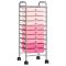 Chariot de rangement mobile à 10 tiroirs Ombre Rose PlastiqueCe chariot à tiroirs présente un style concis et pratique, qui vise à offrir suffisamment d'espace pour garder votre bureau et vos produits de beauté bien organisés et à portée de main. Le cadre chromé offre un support de poids solide et durable et 10 paniers amovibles vous permettent de garder vos objets dans un espace suffisant. Ils sont faciles à enlever et à nettoyer. Les 4 roues pivotantes qui l'équipent facilitent le transport et le stockage. Ce chariot de stockage peut être assemblé en peu de temps. ,