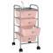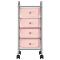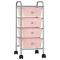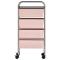Chariot de rangement mobile à 4 tiroirs Rose PlastiqueCe chariot à tiroirs présente un style concis et pratique, qui vise à offrir suffisamment d'espace pour garder votre bureau et vos produits de beauté bien organisés et à portée de main. Le cadre chromé offre un support de poids solide et durable et 4 paniers amovibles vous permettent de garder vos objets dans un espace suffisant. Ils sont faciles à enlever et à nettoyer. Les 4 roues pivotantes qui l'équipent facilitent le transport et le stockage. Ce chariot de stockage peut être assemblé en peu de temps. ,