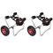 Chariots pour kayak 2 pcs AluminiumAvec ce chariot pour kayak, vous pouvez facilement placer un kayak ou un canoë sur la plate-forme du chariot, fixer et être prêt à partir. Le support à ressort garde le chariot sur terre pour le chargement rapide hors de l' eau. Ce chariot présente deux pare-chocs en mousse sur chaque bras pour une meilleure protection. Ses grandes roues en caoutchouc gonflables et détachables peuvent rouler en douceur sur le sable et le gravier. La construction en aluminium solide est robuste pour des années d'utilisation mais reste légère pour un transport facile. Il est également pliable pour un rangement facile. La livraison inclut 2 chariots de kayak.