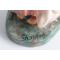 Femme nourrissant une oie, sujet en céramique émaillée polychrome