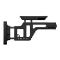 Crosse avec multiples ajustements horizontaux et verticaux par boutons et un busc réglable, équipée d'un rail de type Anschutz sur la partie inférieure.