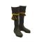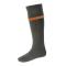 Chaussettes hautes bicolores vertes et moutarde pour homme, avec garters assortis, idéales pour la chasse et le style campagne chic anglais.