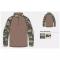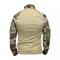 Le torse est constitué de polyester pour ses propriétés respirantes et d'une finition Fire retardant. La partie camo se compose de polycoton pour sa bonne résistance à l'abrasion et à l'eau. Un soin particulier a été apporté à la protection des coudes: le tissus y est renforcé et une poche vous permet d'y glisser des coudières.