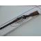 -- A) LES BOIS : LA CROSSE (35,5 cm. jusqu'à la queue de détente), ET LE DEVANT (20,5 cm. de bois + 2 cm. d'embouchoir métal ; rifle court oblige) : La crosse, comme le devant, a des veines "Tigrées" et "Flammées" totalement insoupçonnables sous le "Ciré" en caoutchouc noir livré d'origine. Heureusement pour nous, cette tenue de baroudeuse commençait à se faire la belle et à coller sous les doigts de notre Armurier, au flair de chasseur : " TNNCHASSE " ; sinon, lui et nous, n'aurions jamais découvert le pot aux roses .... A vous de voir si vous voulez tenter l'expérience, ou, la faire tenter par un Homme (Ou Femme .....) de l'art. ?!?! Mais, la surprise boisée ne sera pas forcément au R.V.
