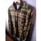Modèle Modern Fit en flanelle épaisse, coloris vert foncé et jaune moutarde avec col en suédine contrastée.