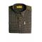 Cette chemise Ligne Verney-Carron Vitry est une chemise avec de fines lignes beiges et vertes sur un fond chocolat.
