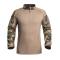 ERGONOMIE - coupe ergonomique adaptée aux besoins du combattant - épaules et coudes renforcés en CORDURA et mousse micro perforée - découpe aisselles en mesh respirant - poignets profilés réglables par velcro - coutures buste plates - col semi-montant zippé - découpe dos rallongée