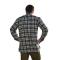 Tissage chevron 100% coton fils teints. Tissu prérétréci et gratté 2 faces. Bouton de courtoisie. Col avec baleine. 1 poche poitrine accordée et boutonnée. Bas droit. Grande longueur. Grammage : 175 g/m². Coloris : bleu.