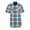 Chemise manches courtes. Motif carreaux fils teints. Col libre. 2 poches poitrine avec broderies fantaisies et empiècements. Interieur de col en tissu chambray.