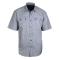 Chemise manches courtes fines rayures verticales 2 poches poitrine à rabats boutonnées Finitions boutonnières en fil contrasté Sous patte en ruban fantaisie