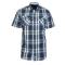 Chemise manches courtes Motif carreaux fils teints Col libre 2 poches poitrine avec rabats et boutons pression cachés Interieur de col et sous patte en tissu contraste