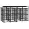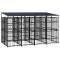 Chenil cage enclos pac animaux d'extérieur avec toit pour chiens acier 7,37 m² noir 02_0041765