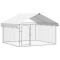 Chenil extérieur avec toit 200x200x150 cmOffrez sûreté, sécurité et confort à votre chiot avec ce chenil d'extérieur. Cette niche polyvalente pour chiens a des multiples utilisations: jeu, exercice, dressage ou tout simplement protection de vos chiens. Ce sera le paradis de jeu parfait pour votre compagnon à quatre pattes ! Ce grand chenil offre un grand espace d'exercice tandis que le maillage tout autour aide à prévenir les dommages et les accidents inattendus tout en permettant la ventilation. Grâce à sa construction en acier galvanisé robuste, ce chenil de qualité est durable et construit pour durer. Fabriqué 100 % en polyéthylène, le toit supérieur inclus est résistant au feu et aux UV, offrant une protection contre le soleil, la pluie, la neige et autres conditions météorologiques. La porte à charnière avec système de verrouillage verrouillable assure une sécurité supplémentaire à vos chiens.