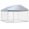 Chenil extérieur avec toit pour chiens 200 x 200 x 135 cmOffrez sûreté, sécurité et confort à votre chiot avec ce chenil d'extérieur. Cette niche polyvalente pour chiens a des multiples utilisations : jeu, exercice, dressage ou tout simplement protection de vos chiens. Ce sera le paradis de jeu parfait pour votre compagnon à quatre pattes ! Ce grand chenil offre un grand espace d'exercice tandis que le maillon de la chaîne tout autour aide à prévenir les dommages et les accidents inattendus tout en permettant la ventilation. Grâce à sa construction en acier galvanisé robuste, ce chenil de qualité est durable et construit pour durer. Fabriqué 100 % en polyéthylène, le toit supérieur inclus est résistant au feu et aux UV, offrant une protection contre le soleil, la pluie, la neige et autres conditions météorologiques. La porte à charnière avec système de verrouillage verrouillable assure une sécurité supplémentaire à vos chiens. Le chenil est facile à assembler. Veuillez noter que la porte peut être installée à gauche ou à droite, selon vos besoins.