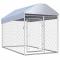 Chenil d'extérieur avec toit pour chiens 200x100x125 cmOffrez sûreté, sécurité et confort à votre chiot avec ce chenil d'extérieur. Cette niche polyvalente pour chiens a des multiples utilisations: jeu, exercice, dressage ou tout simplement protection de vos chiens. Ce sera le paradis de jeu parfait pour votre compagnon à quatre pattes ! Ce grand chenil offre un grand espace d'exercice tandis que le maillon de la chaîne tout autour aide à prévenir les dommages et les accidents inattendus tout en permettant la ventilation. Grâce à sa construction en acier galvanisé robuste, ce chenil de qualité est durable et construit pour durer. Fabriqué 100 % en polyéthylène, le toit supérieur inclus est résistant au feu et aux UV, offrant une protection contre le soleil, la pluie, la neige et autres conditions météorologiques. La porte à charnière avec système de verrouillage verrouillable assure une sécurité supplémentaire à vos chiens. Le chenil est facile à assembler. Veuillez noter que la porte peut être installée à gauche ou à droite, selon vos besoins.