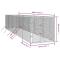 Chenil d'extérieur pour chiens argenté 2x10x2 m acier galvaniséCe chenil d'extérieur pratique et spacieux est un choix parfait comme enclos extérieur pour garder vos animaux de compagnie en sécurité et à l'aise. Niche polyvalente : la niche pour chien dispose d'un espace spacieux qui permet à vos chiens, poules, lapins, canards et autres petits animaux de jouer, de faire de l'exercice, de s'entraîner ou tout simplement de se reposer.Construction robuste : fabriquée en acier galvanisé très résistant, la cage pour chien est robuste et durable.Porte verrouillable : la niche extérieure pour chien a une porte verrouillable pour protéger vos petits animaux des prédateurs et autres dangers à l'extérieur.Conception en maille : la conception en maille du chenil pour chiens assure des conditions de vie sèches et ventilées. Attention ! Les fils métalliques peuvent être pointus et tranchants ! Portez des chaussures de sécurité et des gants de protection lors de l'installation !
