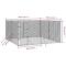 Chenil d'extérieur pour chiens argenté 4x4x2 m acier galvaniséCe chenil d'extérieur pratique et spacieux est un choix parfait comme enclos extérieur pour garder vos animaux de compagnie en sécurité et à l'aise. Niche polyvalente : la niche pour chien dispose d'un espace spacieux qui permet à vos chiens, poules, lapins, canards et autres petits animaux de jouer, de faire de l'exercice, de s'entraîner ou tout simplement de se reposer.Construction robuste : fabriquée en acier galvanisé très résistant, la cage pour chien est robuste et durable.Porte verrouillable : la niche extérieure pour chien a une porte verrouillable pour protéger vos petits animaux des prédateurs et autres dangers à l'extérieur.Conception en maille : la conception en maille du chenil pour chiens assure des conditions de vie sèches et ventilées. Attention ! Les fils métalliques peuvent être pointus et tranchants ! Portez des chaussures de sécurité et des gants de protection lors de l'installation !