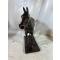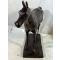 La pièce est en bronze massif, patine brune, montée sur une base intégrée.