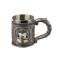 Chope à bière décorée,réalisée en résine. Mug de couleur acier ornée de symboles et d'un chevalier Templier "Croix de saint Jean".