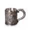 Chope à bière décorée,réalisée en résine. Mug de couleur acier ornée de symboles et d'un chevalier Templier.