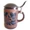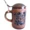 Chope à bière en porcelaine marron motifs de fleurs gravées couvercle étain
