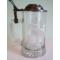 Chopede bière en verre blanc couvercle étain , gravé d'un voilier , une ancre et un gouvernail  . Inscription gravée H.M.S. Victory 1765.