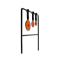 Cible tournante RazorGun Type 3 composée de trois disques métalliques de diamètres différents montés sur une structure fixe. Rotation des cibles à l'impact, conception légère et cadre métallique adapté au tir à air comprimé.