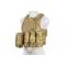 Le gilet est préparé pour un assemblage d'inserts balistiques factices et comprend en standard de tels inserts en mousse rigide. Il dispose également d'un système de lignes en acier intégré qui permet une libération rapide du gilet (factice)