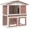 Clapier d'extérieur 3 portes Marron BoisCe clapier de qualité avec 2 étages fournit un grand endroit confortable pour garder des petits animaux, particulièrement des lapins mignons. Il a plusieurs usages : jouer, faire de l'exercice, s'entraîner ou simplement garder vos animaux en toute sécurité. Ce clapier à lapin offre à vos animaux de compagnie un vaste espace d'exercice, tandis que le grillage en fer permet d'éviter les comportements espiègles et les accidents inattendus. De plus, la construction du grillage en fer assure la surveillance des animaux de compagnie et permet à ces derniers de garder un oeil sur les environs et de prendre suffisamment d'air frais. Le clapier est construit avec un cadre en bois de haute qualité, ce qui en fait un enclos solide et sûr qui dure des années. Son toit vert empêche la pluie de s'y infiltrer, tandis que l'enclos intérieur confortable constitue l'endroit idéal pour dormir. Une rampe facile d'escalade mène du niveau du sol inférieur à l'étage. Un plateau coulissant facilite le nettoyage. Les portes se ferment facilement et se verrouillent avec des loquets à glissière. Cette cage à lapins en bois est parfaite pour les petits animaux de compagnie. Remarque importante : nous vous recommandons de placer la cage à lapin à l'abri. Ainsi, elle aura une durée de vie plus longue.