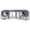 Clapier d'extérieur avec piste Gris et blanc Bois de sapinCe clapier en bois fournit un grand endroit confortable pour garder des petits animaux, particulièrement vos lapins mignons. Il a plusieurs usages : jouer, faire de l'exercice, s'entraîner ou simplement garder vos animaux en toute sécurité. La cage à lapin a un design complet avec deux maisons et une très grande piste avec grillage en acier galvanisé, pour garder un oeil sur vos animaux de compagnie et empêche également les accidents inattendus. Elle assure également votre surveillance des lapins et leur permet d'obtenir suffisamment d'air frais. La maison d'animaux est construite à partir de cadre en bois de sapin massif, ce qui la rend stable et durable. En outre, le toit inclinable dispose de tissu résistant à l'eau et empêche la pluie de pénétrer. La cage offre la zone de couchage parfaite. De plus, la rampe antidérapante mène du niveau inférieur au niveau supérieur. Cet habitat pour petits animaux est un excellent choix pour vos animaux de compagnie dans la cour.