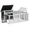 Clapier gris 144x123x67,5 cm bois de pin massifCe clapier avec un centre d'activités spacieux et une aire de couchage, offre un endroit sûr et confortable où vos amis à fourrure, tels que les lapins, les cochons d'Inde, les petits canards et autres petits animaux de compagnie, peuvent s'amuser et se reposer. Construction robuste : Ce clapier d'extérieur est fabriqué en bois de pin massif, ce qui contribue à une construction robuste. Le bois de pin est un beau matériau naturel. Son grain droit et les noeuds donnent au matériau son aspect caractéristique et rustique. Dotée d'un toit résistant à l'eau, la cage à lapin est parfaite pour une utilisation en extérieur. Paroi grillagée : la cage à lapin est équipée de parois grillagées qui évitent les méfaits et les accidents inattendus. De plus, elles vous permettent d'observer vos lapins tous les jours et leur garantissent un large champ de vision et suffisamment d'air frais. Centre d'activités à plusieurs niveaux : dotée d'un nichoir et d'une aire de jeu spacieuse, la maison des lapins offre suffisamment d'espace pour que vos petits animaux de compagnie puissent jouer et se déplacer librement. Plateau étanche : la cage à lapins est équipée d'un plateau étanche extractible qui facilite le nettoyage.