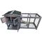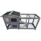 Équipements : roulettes, tiroir à déjections, portillon avec verrou, échelle vers le parc