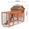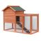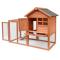 Ce clapier fabriqué en bois d'épicéa est équipé de deux niveaux et peut compléter la détention de petits animaux à côté d'un grand enclos.