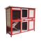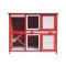 Le châssis est en bois de sapin, peint en rouge et blanc, ce qui confère au clapier une touche chaleureuse.