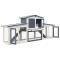 Clapier large d'extérieur Gris et blanc 204x45x85 cm BoisDonnez à vos amis à fourrure un espace de vie confortable avec notre clapier en bois ! Ce clapier sur 2 niveaux offre un grand endroit confortable pour garder les petits animaux, en particulier les lapins. Il présente de multiples utilisations : jouer, faire de l'exercice, s'entraîner ou simplement garder vos animaux de compagnie en toute sécurité. Il est construit en bois de sapin peint solide qui est durable et sans danger pour les animaux. Un toit en asphalte garde vos amis à fourrure à l'abri des intempéries extérieures. La perche surélevée garde vos petits animaux en sécurité, au sec et au chaud, surtout les jours de pluie. Les deux côtés sont équipés de la rampe, donc votre animal de compagnie peut facilement entrer dans la zone de logement surélevée. Conçu pour un entretien simple, il contient un plateau amovible pour un nettoyage facile. L'espace extérieur avec un câblage de clôture durable assure une ventilation suffisante et garde les animaux de compagnie à l intérieur et les prédateurs à l'extérieur. Les portes verrouillables protègent vos animaux de compagnie et vous permettent de les faire rentrer et sortir facilement. Le clapier est facile à assembler avec tout le matériel nécessaire inclus. Remarque importante : Nous vous recommandons de placer la cage à lapins sous abri. En conséquence, elle durera plus longtemps.
