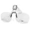 Loupe montée sur une armature relevable, qui se fixe sur tous les types de lunettes.