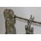 Ancienne sculpture Birmane en bronze représentant une cloche de temple portée par deux fidèles Bouddhistes