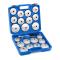 Le coffret contient des cloches de types et de diamètres variés (65 à 110 mm) adaptées à un grand nombre de véhicules.