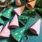 Cuir lisse rose, nuance colorée de : Rouge, Blanc, Vert & OR.
